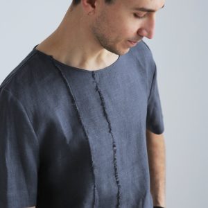 Linen T Shirt With Side Slits Men’s Basic