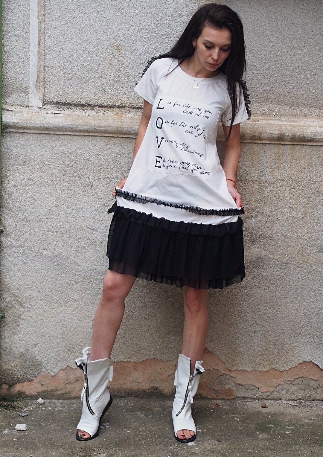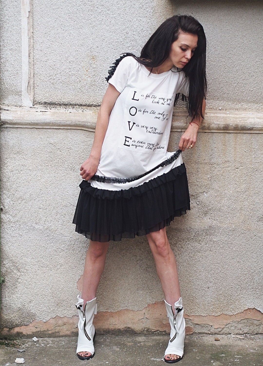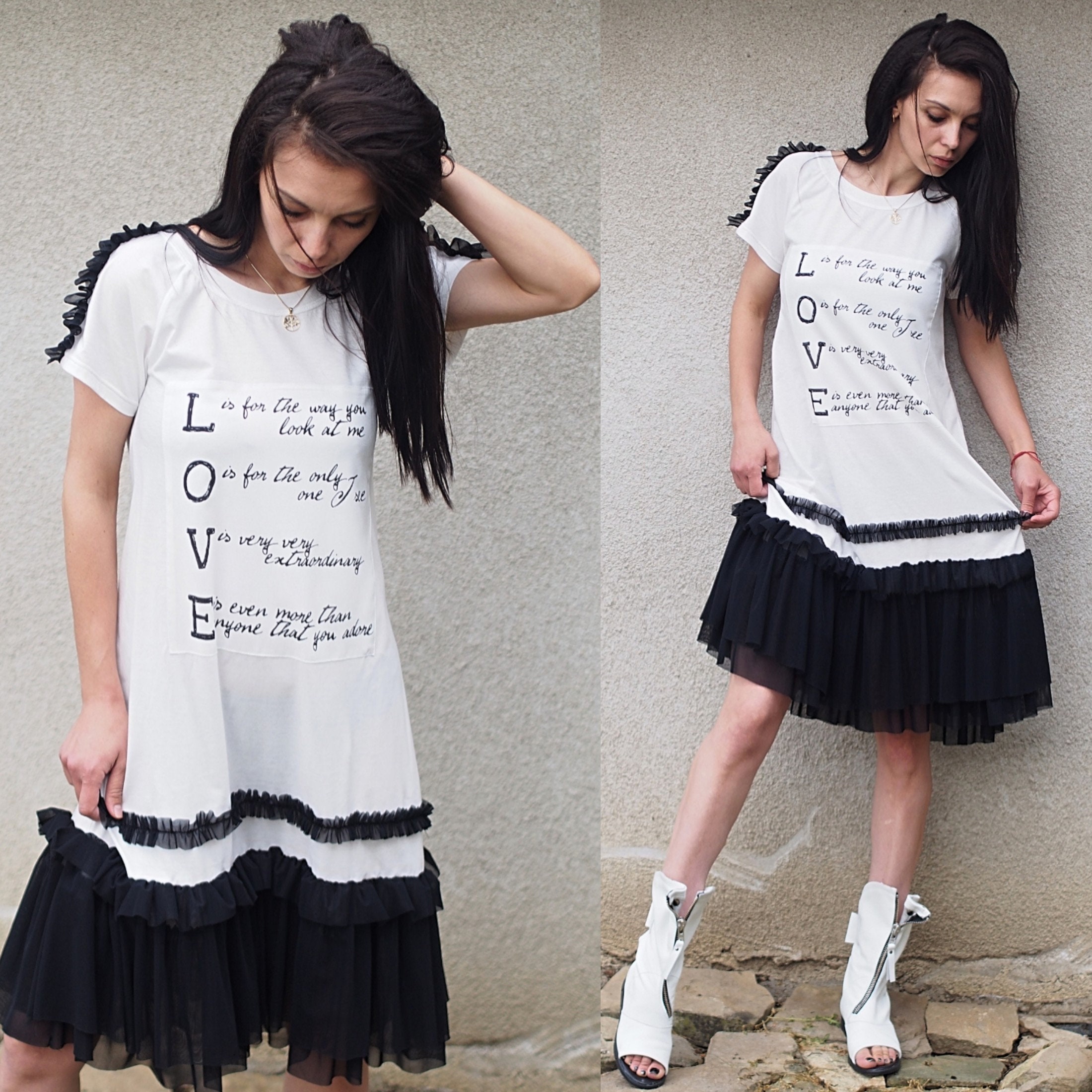 Love Statement Dress Black & White Ruffled Tulle